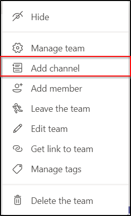 - Click on 3 points next to the name of the Teams to which you want to add a channel